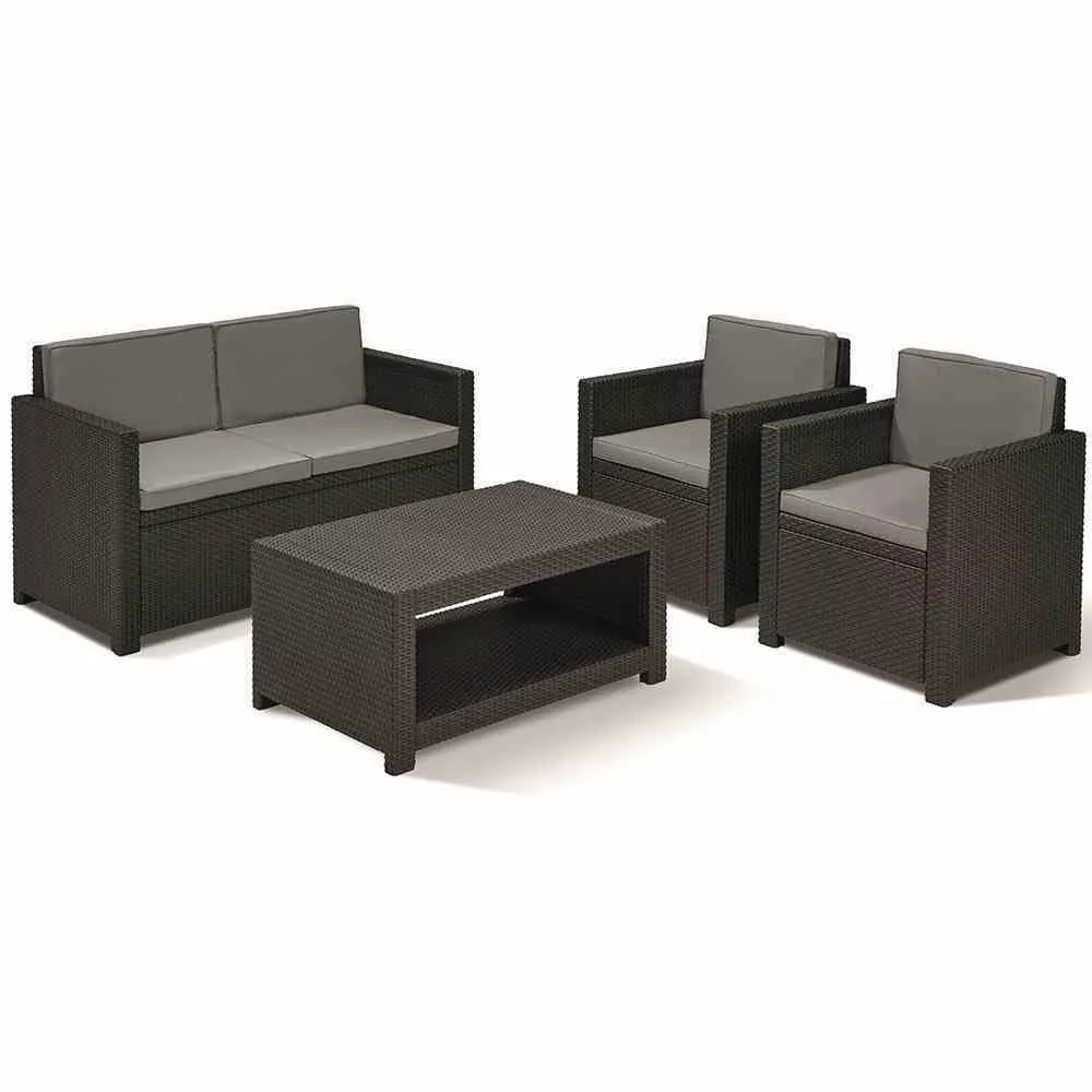 Monaco Loungeset, graphit 2Sessel,1Bank,1Tisch,Kissen