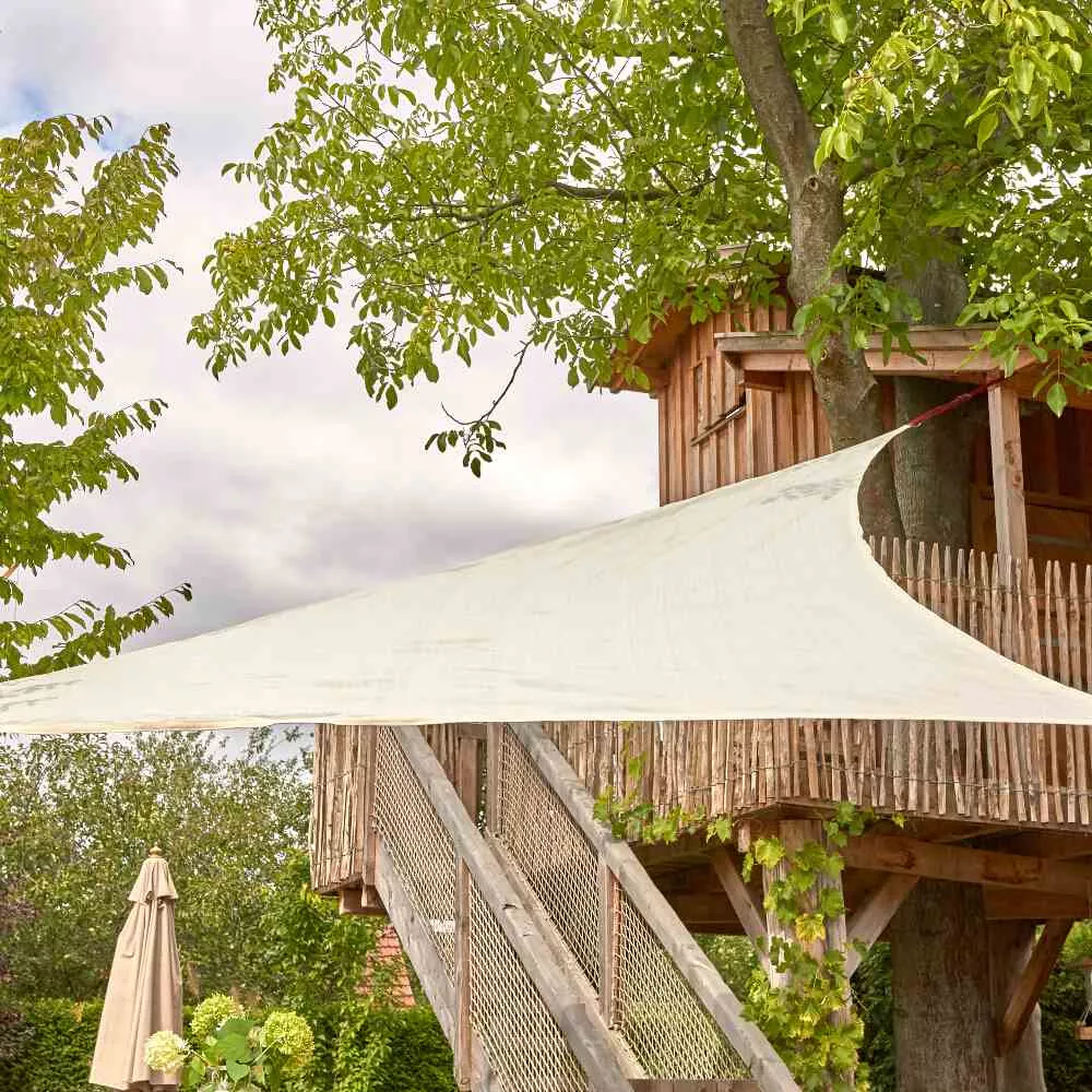 • dank der offenen Gewebe-Struktur, kann das Sonnensegel die ganze Saison draußen bleiben (März bis September) und selbst bei starkem Wind aufgespannt bleiben