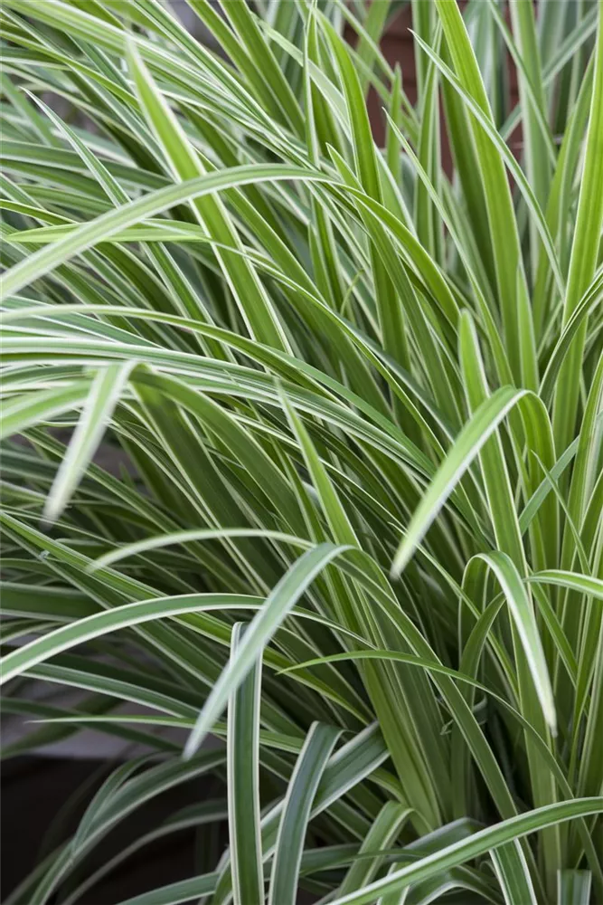Die Japanische Segge (Carex morrowii) ist mit ihrer mittelgrünen Blattfärbung ein dekoratives Gestaltungselement im Garten, welches sich an einem halbschattigen bis schattigen Standort mit einem möglichst durchlässigen, humosen, nährstoffreichen Boden am wohlsten fühlt. Die braunen Blütenwedel schmücken die horstbildend wachsende Pflanze ab Frühling. Bei günstigen Bedingungen erreicht dieses winterharte Gras eine Höhe von ca. 40 cm und wird bis zu 40 cm breit.