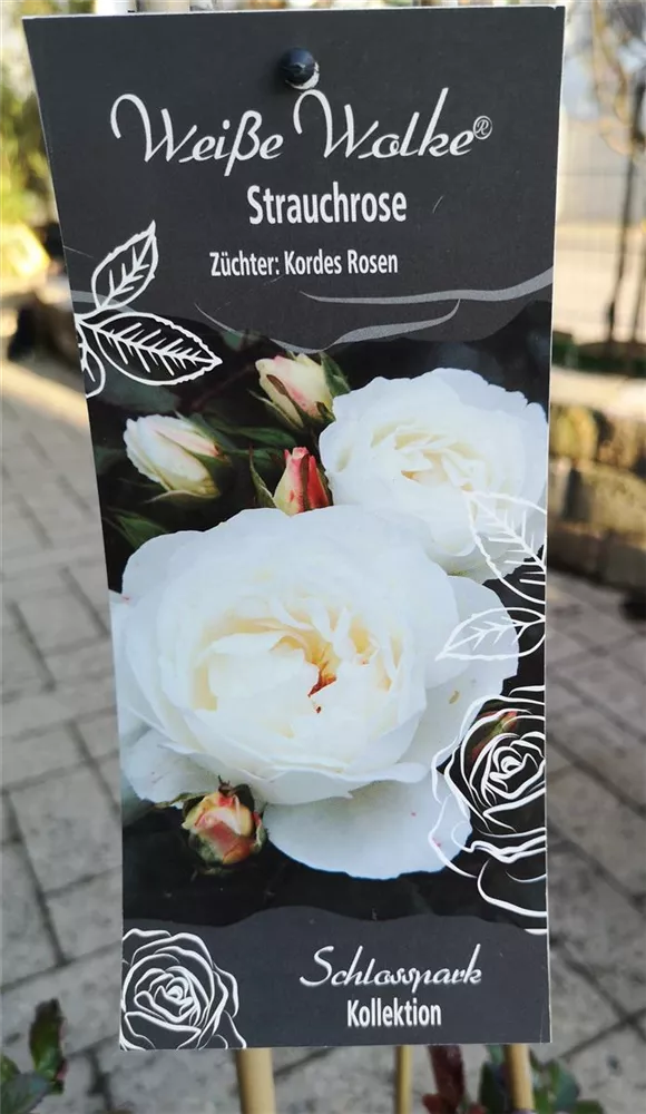 Die Strauchrose 'Weiße Wolke'®(s) (Rosa) ist eine reichblühende Rose, die im Garten eine besondere Rolle spielt. Die zahlreichen halbgefüllten Blüten sind weiß und erscheinen von Juni bis Oktober. Ihr wunderbarer Duft entfaltet sich besonders an sonnigen, warmen Tagen. Mit den richtigen Begleitern an ihrer Seite, kommt die Königin der Blumen besonders gut zur Geltung. Niedrige Stauden, Lavendel und Salbei eignen sich ganz gut für diese Zwecke.