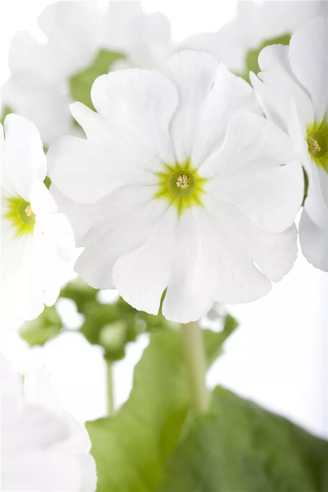 Primula obconica 'Touch Me® White' bildet schalenförmige, weiße Blüten ab März.