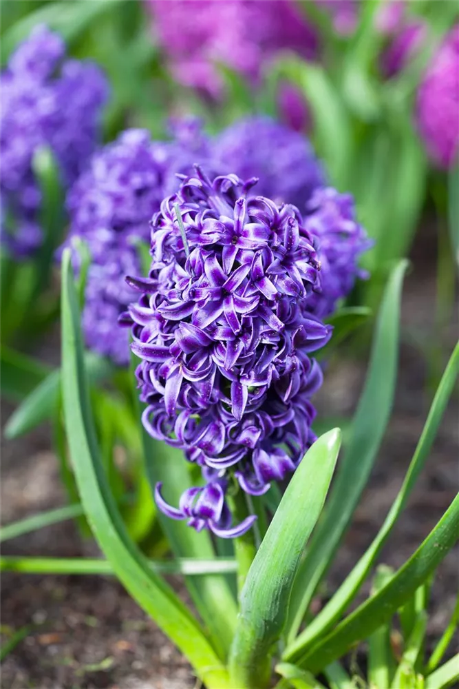 Die blauen, trichterförmigen Blüten der Hyazinthe erscheinen in Trauben von April bis Mai. Diese sind angenehm duftend.