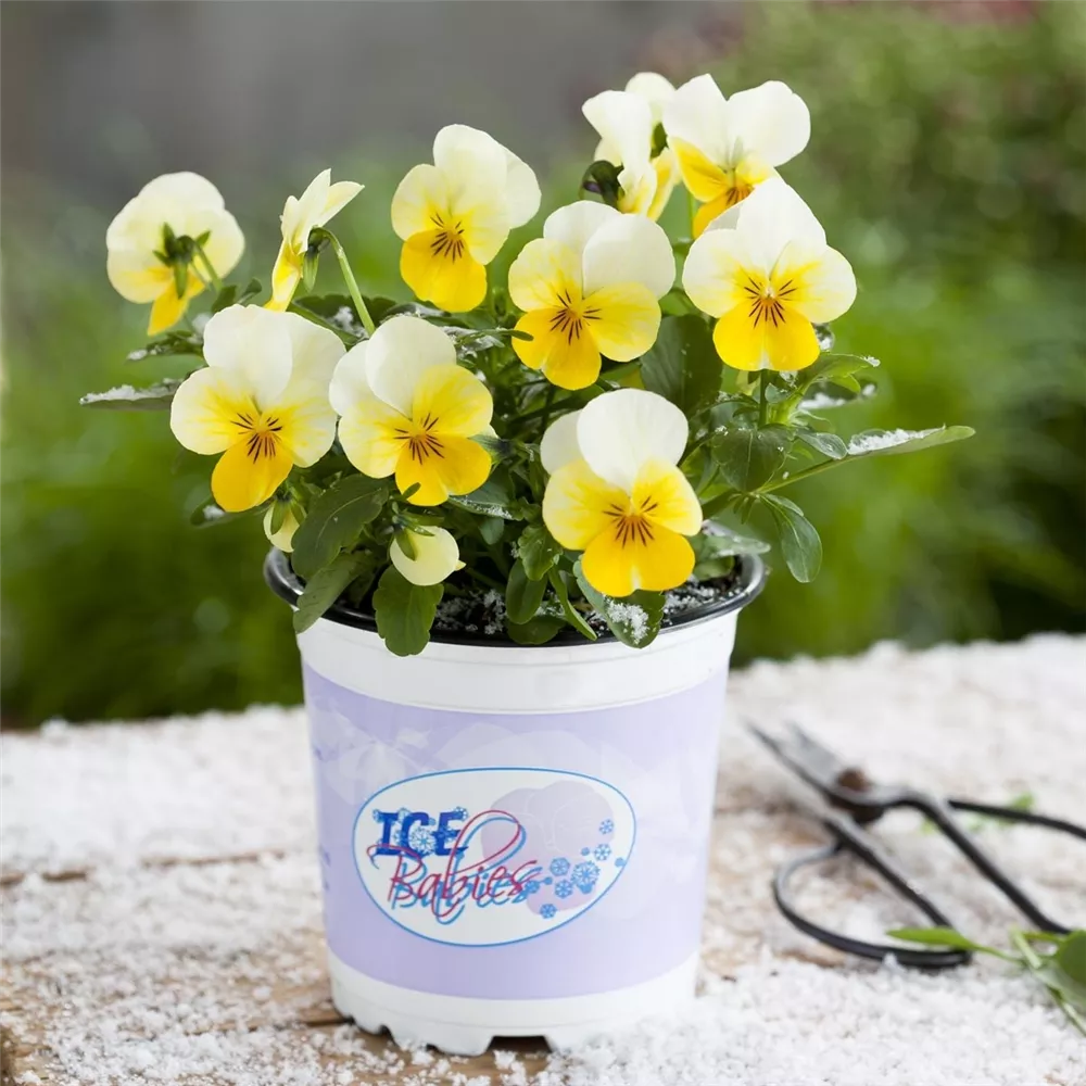 Mini-Winterveilchen 'Ice Babies® Cream Yellow Lip' ist auch unter diesem Namen bekannt: Gehörntes Stiefmütterchen.
