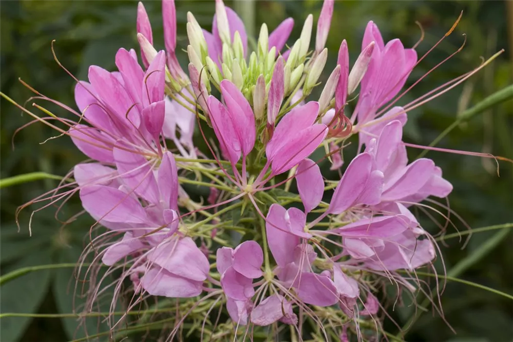 Die Spinnenblume verzaubert durch ihre zahlreichen weißen, rosafarbenen, duftenden Blüten, die die ganze Saison hindurch erscheinen.
