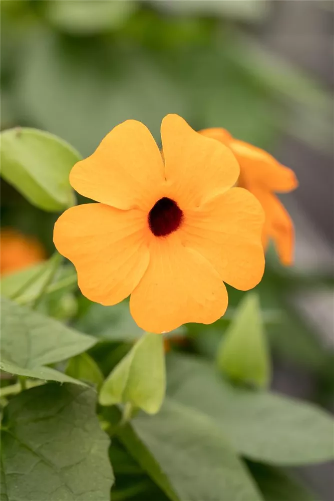 Die Schwarzäugige Susanne 'Sunny Susy® Red Orange' (Thunbergia alata) ist eine beliebte Pflanze für den Balkon. Die unzähligen Blüten erscheinen, je nach Sorte, in verschiedenen Farben die ganze Saison hindurch. Ein sonniger bis halbschattiger Standort und ein durchlässiges Substrat werden bevorzugt.