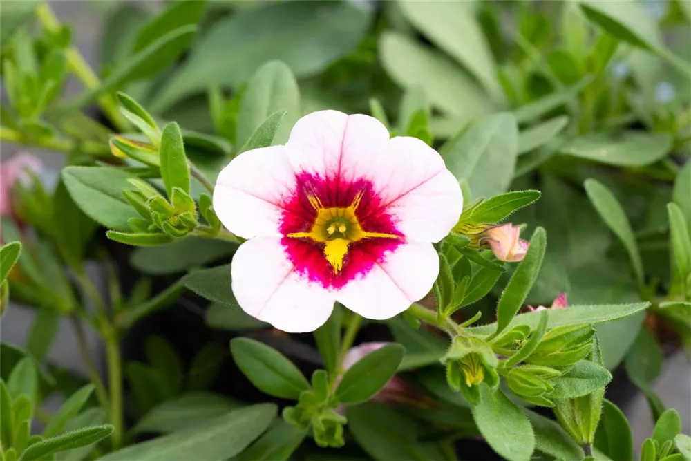 - Zauberglöckchen, auch Calibrachoa oder Carillon genannt, sehen aus wie eine kleine Petunie, sind jedoch noch robuster: Ihre Triebe brechen nicht so leicht und regenfest ist sie auch