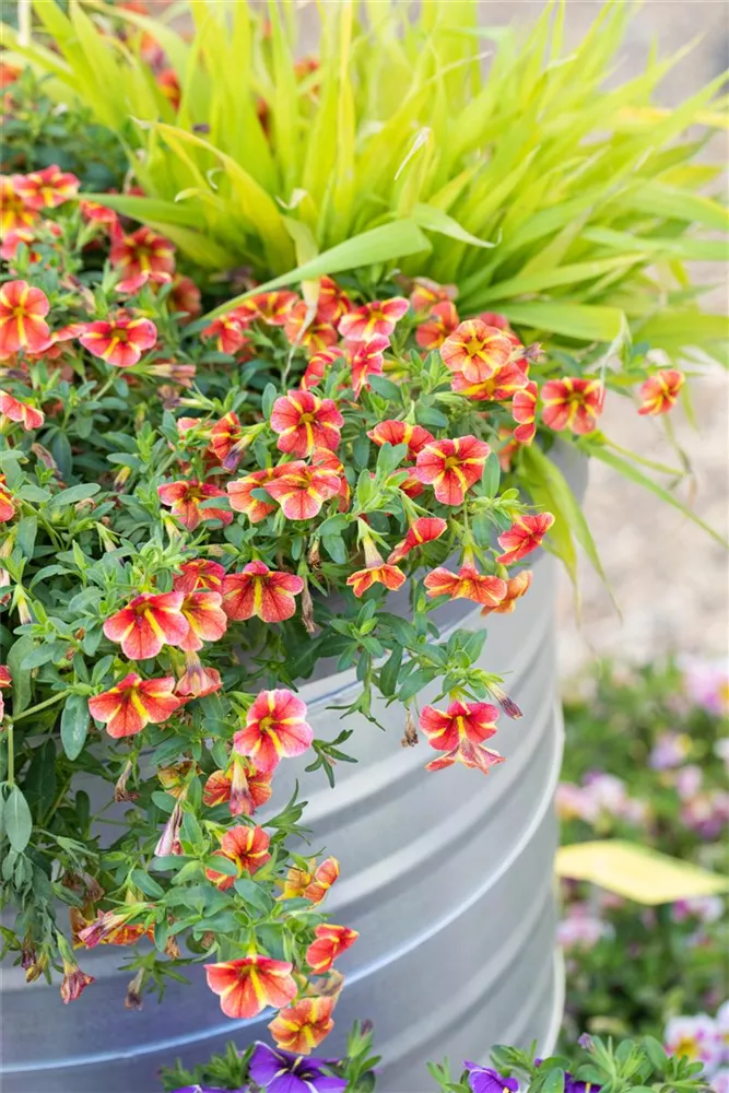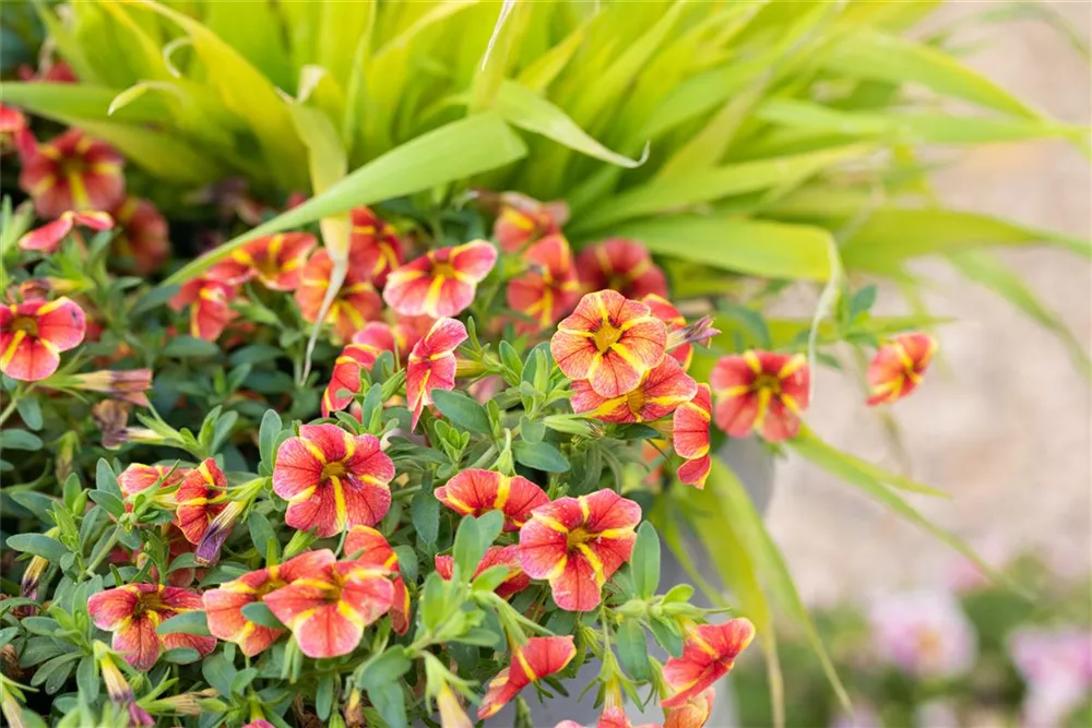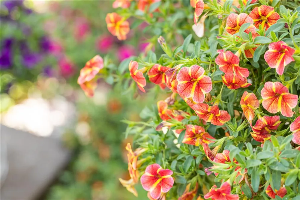 - Zauberglöckchen, auch Calibrachoa oder Carillon genannt, sehen aus wie eine kleine Petunie, sind jedoch noch robuster: Ihre Triebe brechen nicht so leicht und regenfest ist sie auch