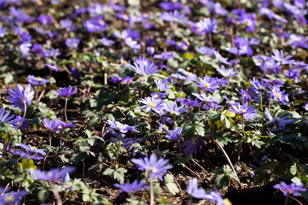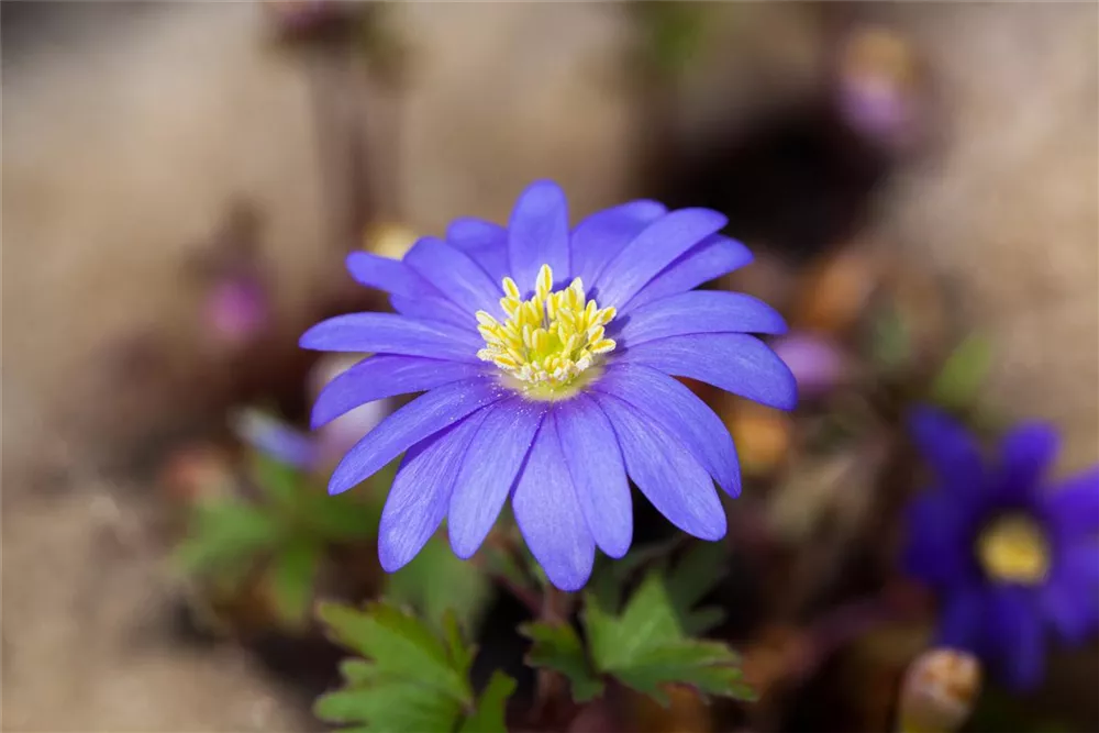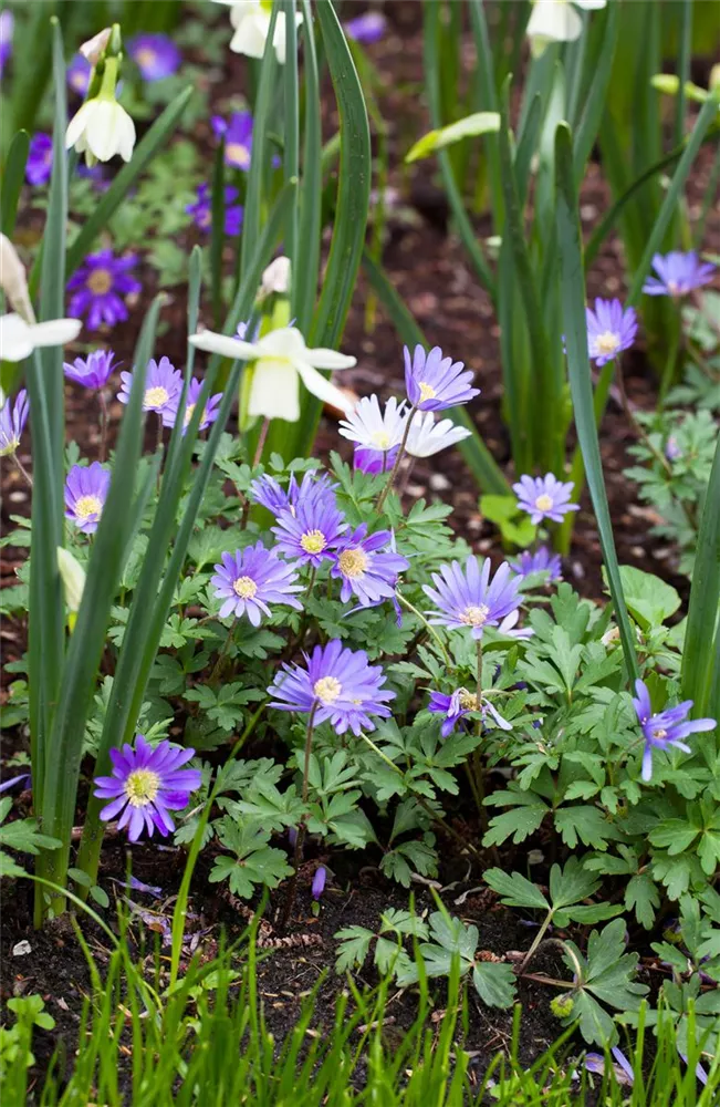 - tiefblaue blühende Anemone blanda 'Blue Shades'