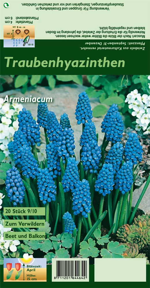 Die beste Pflanzzeit für Muscari armeniacum ist September - Dezember.