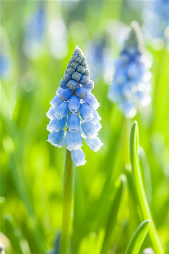 Welch eine Pracht, wenn die Armenische Traubenhyazinthe ab April ihre herrlichen, blauen Blüten hervorbringt! Das Besondere: sie verbreiten einen angenehmen Duft. Über den dunkelgrünen, linealen Blättern kommen die Blüten besonders gut zur Geltung. Wird Muscari armeniacum an einen sonnigen bis halbschattigen Standort mit durchlässigem und lockerem Boden gepflanzt, entwickelt sie sich besonders gut. Sie wächst aufrecht, horstbildend und erreicht Größen von 15 cm bis 20 cm bei einer Breite von 6 cm bis 8 cm. Sehr dekorativ macht sich die Armenische Traubenhyazinthe auch in Kübeln oder Kästen. Muscari armeniacum hat sich als besonders pflegeleicht erwiesen.