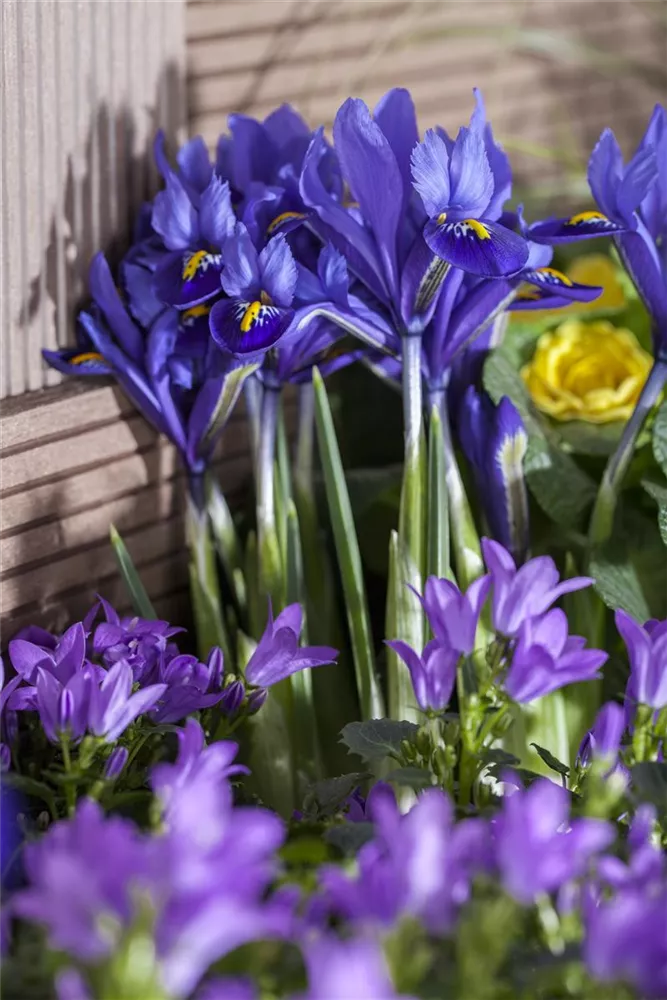 Zusammengepflanzt mit Seerosen-Tulpe bildet die Zwiebel-Schwertlilie einen harmonischen Anblick.