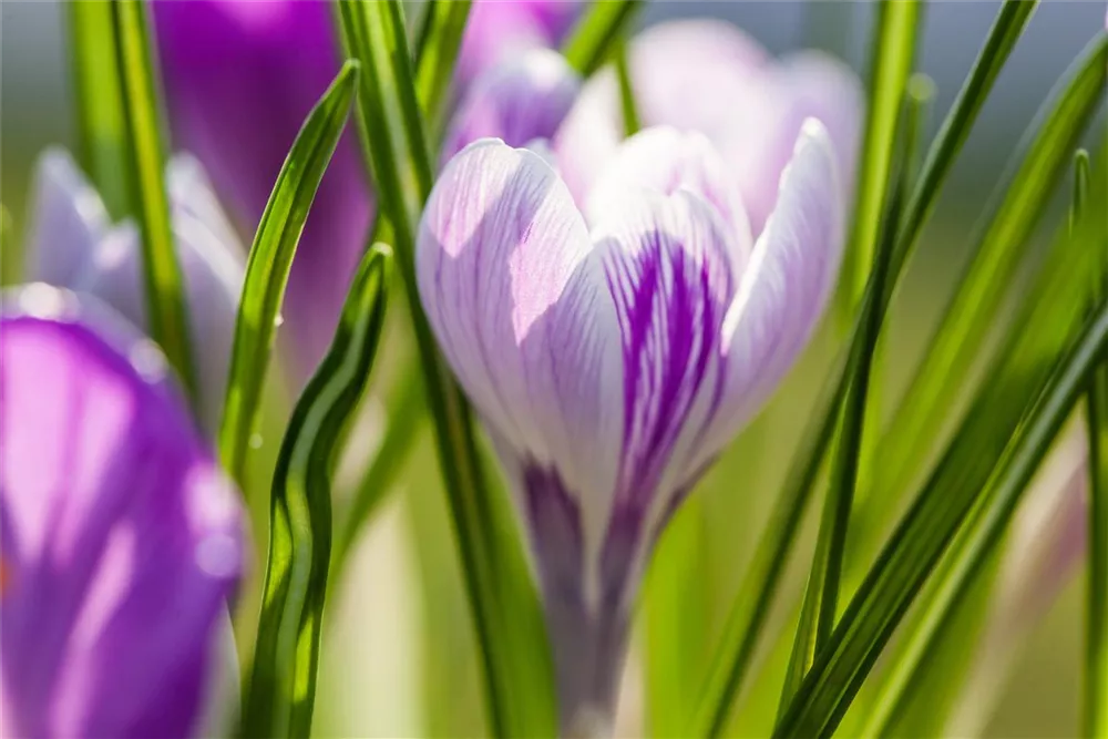 Zwischen Februar und März lässt der Frühlings-Krokus 'King of the Striped' seine Blüten in Blau-weiß erstrahlen und ihren angenehmen Duft verbreiten.