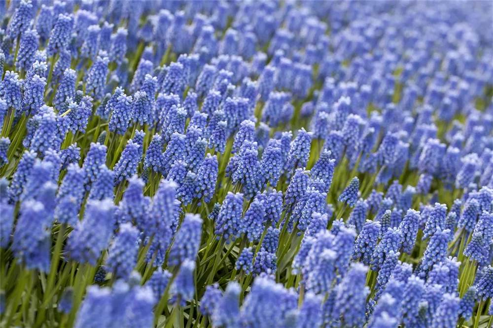 - Die Traubenhyazinthe 'Blue Magic' (Muscari) ist eine pflegeleichte Pflanze, die blau-weiß blüht