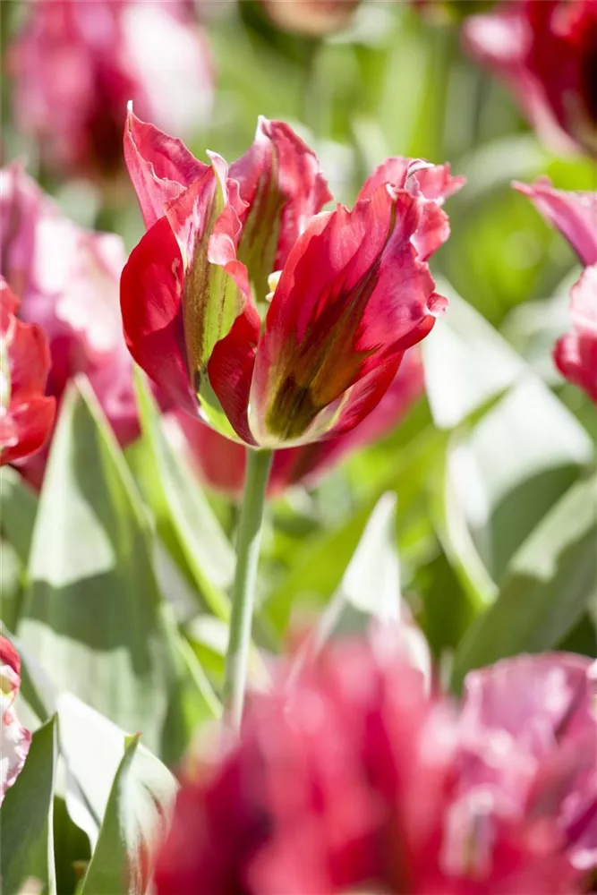 Ab Mai lässt die Tulpe 'Esperanto' ihre Blüten in Grün-rot erstrahlen.