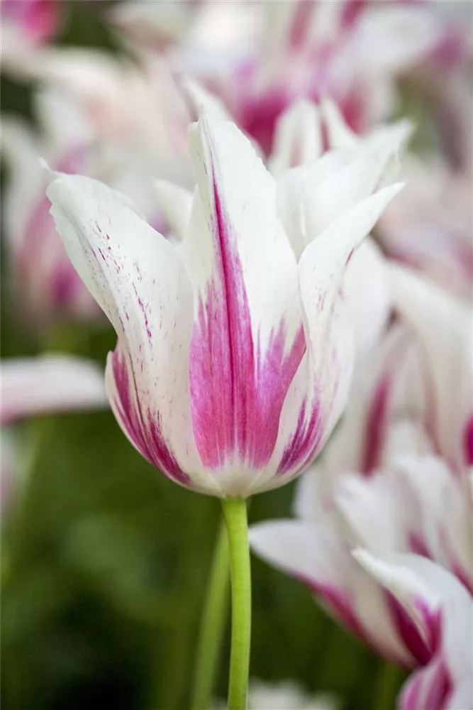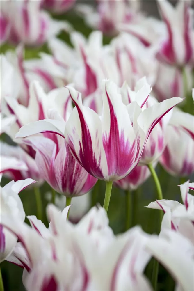 Zwischen April und Mai lässt die Tulpe 'Marilyn' ihre Blüten in Purpurrot-weiß erstrahlen und ihren angenehmen Duft verbreiten.