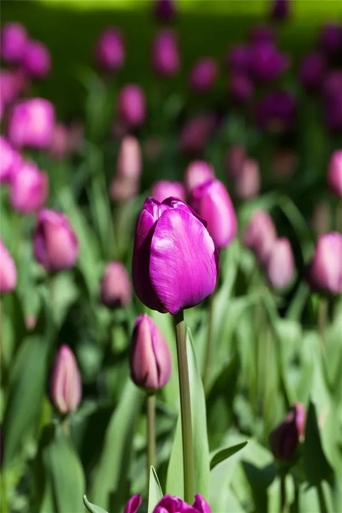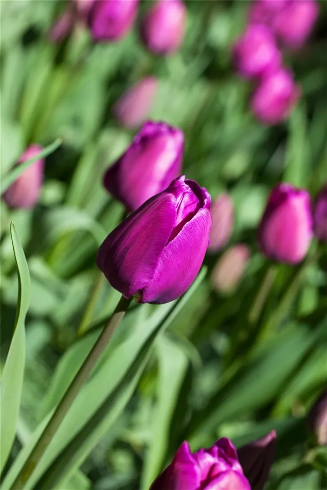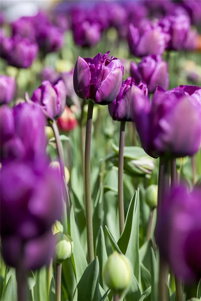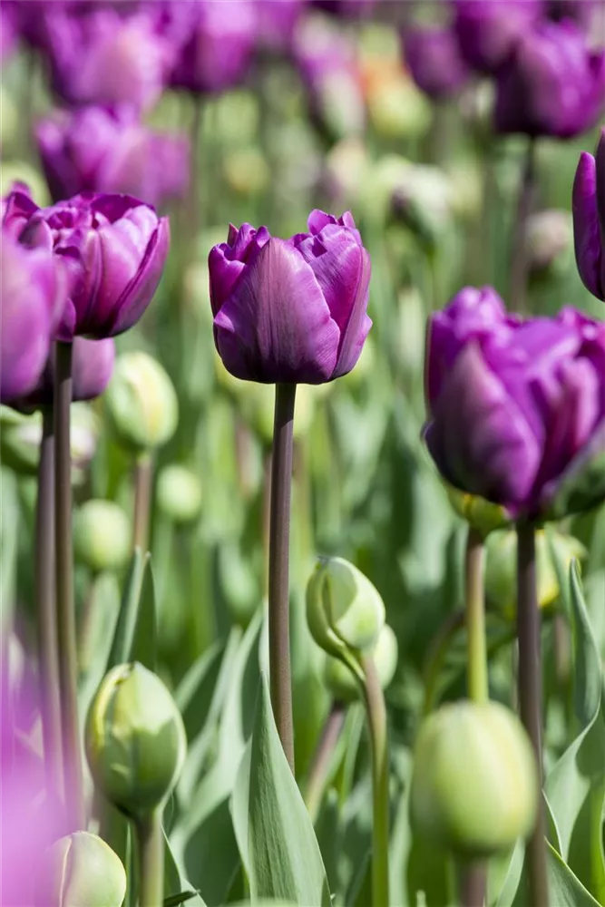 Welch eine Pracht, wenn die Tulpe 'Negrita' ab April ihre herrlichen, purpurvioletten Blüten hervorbringt! Das Besondere: sie verbreiten einen angenehmen Duft. Über den dunkelgrünen, linealen Blättern kommen die Blüten besonders gut zur Geltung. Wird Tulipa 'Negrita' an einen sonnigen Standort mit durchlässigem und humosem Boden gepflanzt, entwickelt sie sich besonders gut. Sie wächst schlank, aufrecht und erreicht Größen von 30 cm bis 40 cm bei einer Breite von 8 cm bis 10 cm. Sehr dekorativ macht sich die Tulpe 'Negrita' auch in Kübeln oder Kästen. Tulipa 'Negrita' hat sich als besonders pflegeleicht erwiesen.
