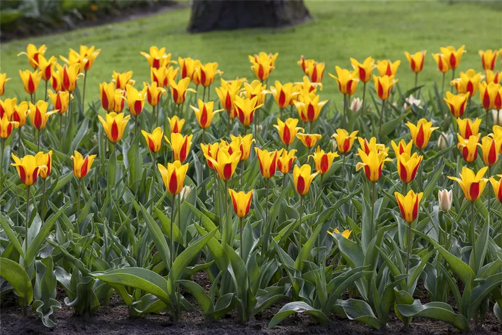 Zwischen März und April lässt die Tulpe 'Stresa' ihre Blüten in Gelb-rot erstrahlen und ihren angenehmen Duft verbreiten.