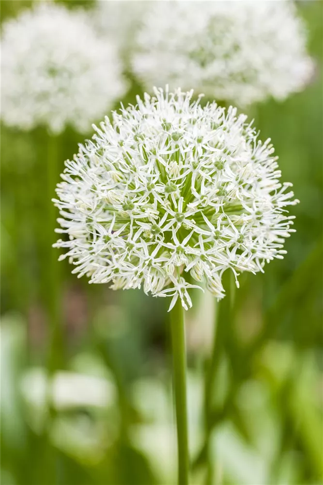 Zwischen Mai und Juni lässt der Zierlauch 'Ping Pong' seine Blüten in Weiß erstrahlen. Die Blüten sind ballförmig.