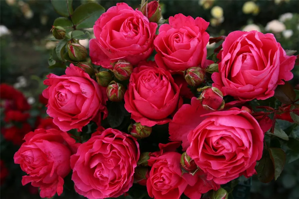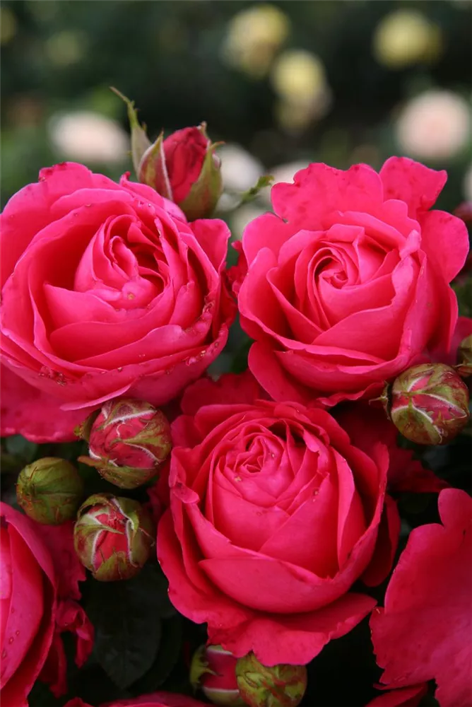 Sehr dicht und harmonisch wachsende Edelrose mit elegant geformten, romantisch gekerbten Blüten, die meist in kleinen Dolden erscheinen. Mit exzellenter Blattgesundheit.
