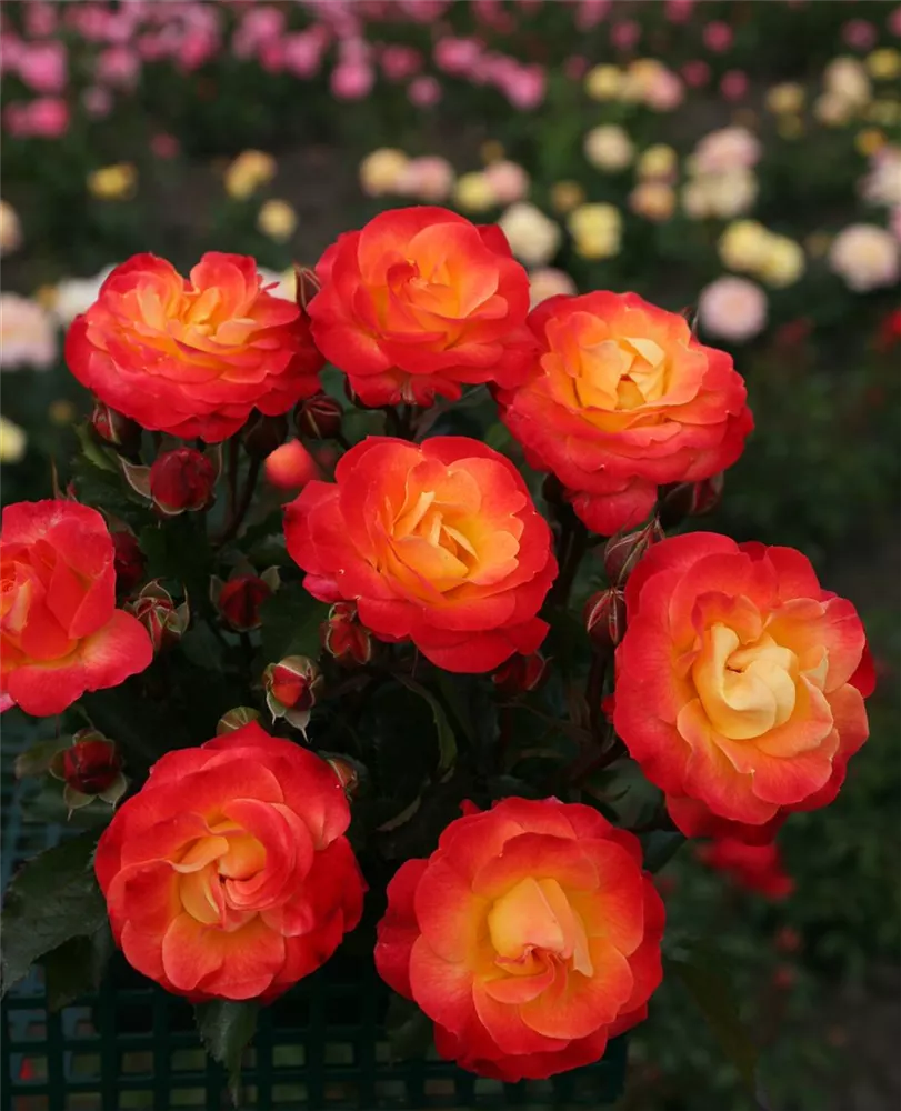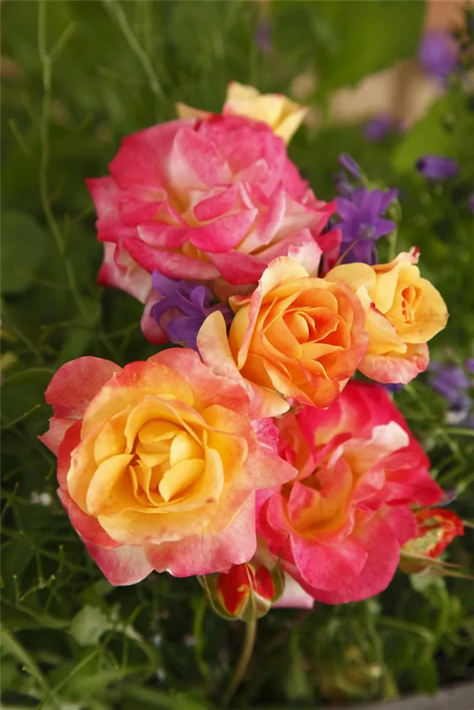 Die Beetrose 'Firebird'® (Rosa) ist eine reichblühende Rose, die im Garten eine besondere Rolle spielt. Die gefüllten Blüten sind gelb-rot und erscheinen zahlreich von Juni bis September. Mit den richtigen Begleitern an ihrer Seite, kommt die Königin der Blumen besonders gut zur Geltung. Niedrige Stauden, Lavendel und Salbei eignen sich ganz gut für diese Zwecke.