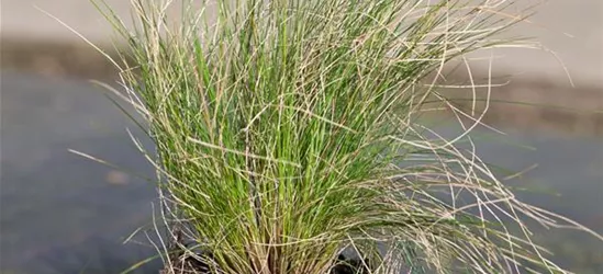 Die wintergrünen Blätter des Blau-Schwingels sind blau-grau, lineal.