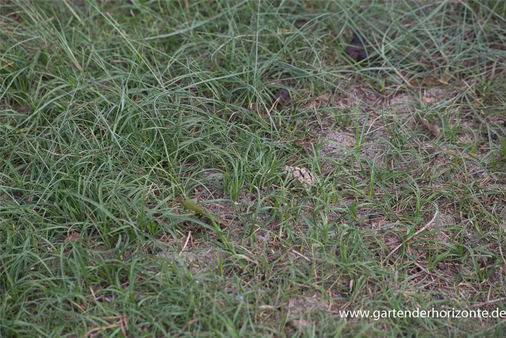 Die immergrünen Blätter der Strandsegge sind grau-grün, lineal.