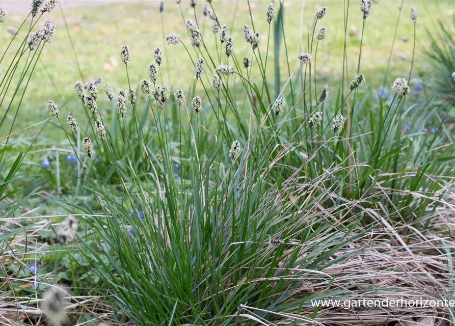Das Grüne Kopfgras (Sesleria heufleriana) ist mit seiner dunkelgrünen Blattfärbung ein dekoratives Gestaltungselement im Garten, welches sich an einem sonnigen bis halbschattigen Standort mit einem möglichst durchlässigen, kalkhaltigen Boden am wohlsten fühlt. Die schwarzen Blütenwedel schmücken die aufrecht, horstbildend und schlank wachsende Pflanze ab Frühling. Bei günstigen Bedingungen erreicht dieses winterharte Gras eine Höhe von ca. 60 cm und wird bis zu 40 cm breit.