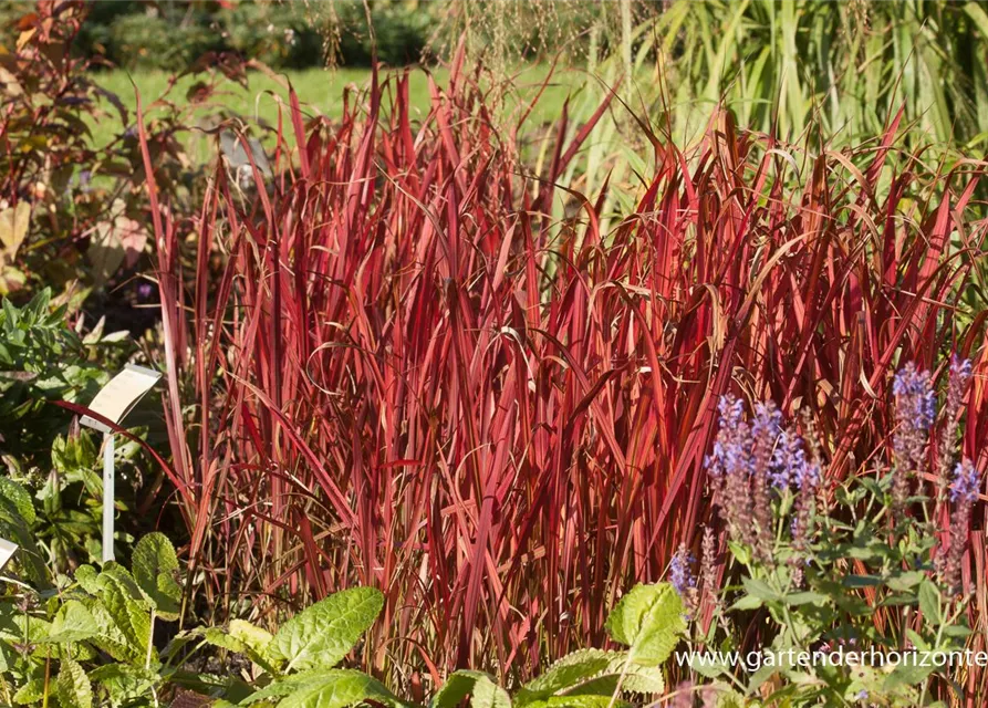 Das Garten-Blutgras 'Red Baron' setzt schöne Akzente gemeinsam mit: