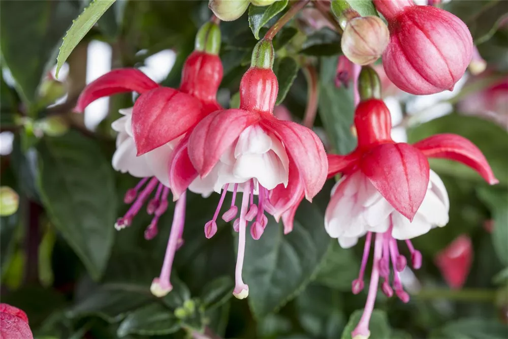 Die Freiland Fuchsie 'Eva Boerg' weist eine gute Frosthärte auf.