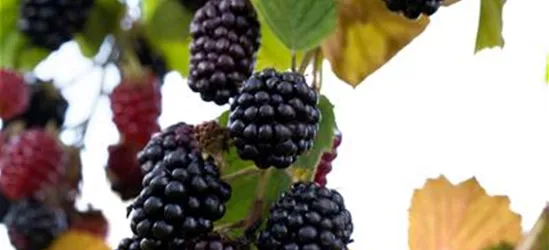 Neuseelandische selbstfruchtbare Brombeerensorte. Große, längliche, feste Frucht, glänzend schwarz., saftig.
