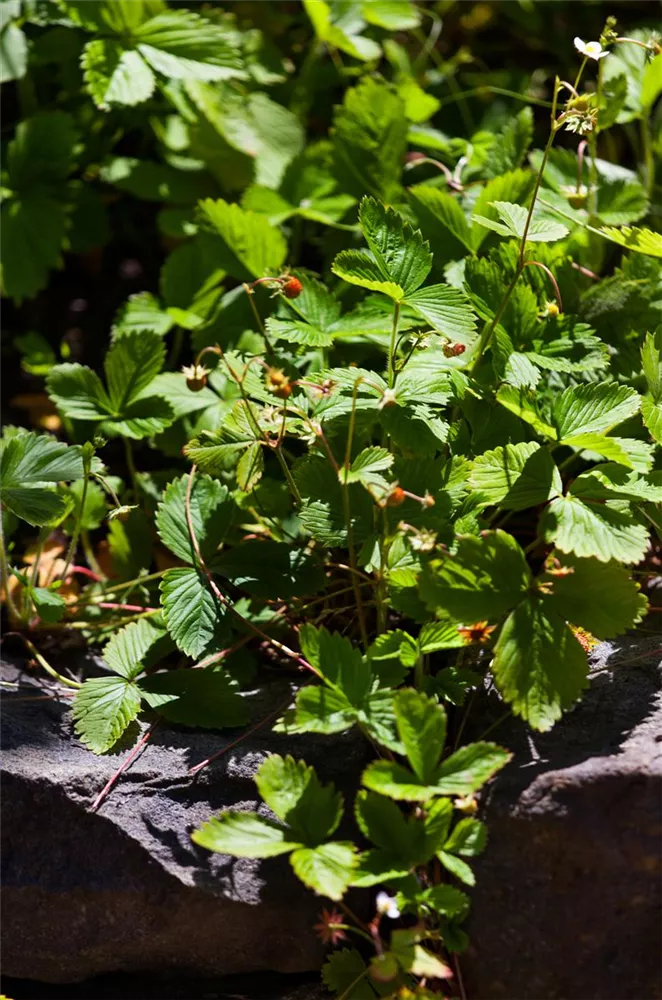 Die Wald-Erdbeere (Fragaria vesca) ist eine ausläuferbildende, kriechende wintergrüne Staude, die von April bis Juni weiße Blüten bildet. An einem sonnigen Standort mit durchlässigem, humosem Boden erreicht sie gewöhnlich eine Höhe von ca. 15 cm und wird ca. 30 cm breit. Die Wald-Erdbeere ist gut frostverträglich.