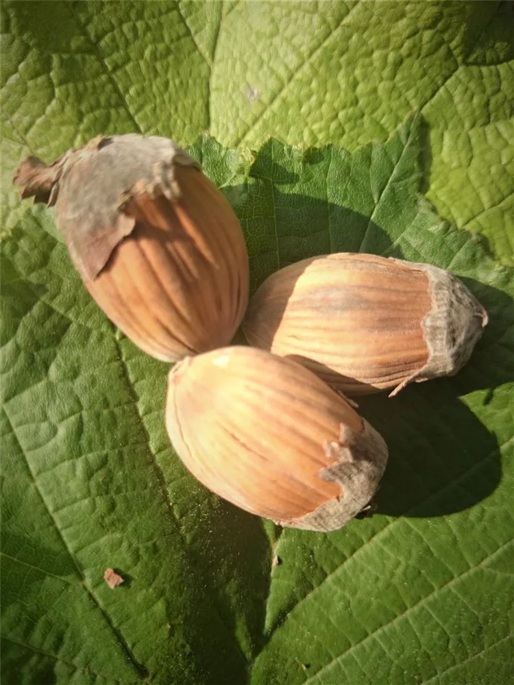 Die braunen Früchte haben einen aromatischen, nussigen Geschmack und sind zum Verzehr geeignet. Erntezeit ab September.