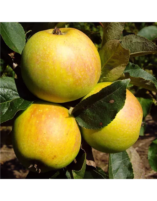 Mittelgroße bis große Frucht, abgeflacht, grüngelblich mit roten Streifen. Weißgelbes Fleisch, süß aromatisch mit angenehmer Säure. Reifezeit Mitte September, essbar von Oktober bis Dezember. Mittlere, aber regelmäßige Erträge.