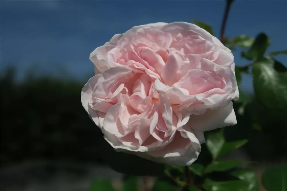 Die hellrosafarbenen, schalenförmigen Blüten sind starkgefüllt und erscheinen von Juni bis Oktober. Diese werden etwa 6 - 8 cm groß und sind stark duftend.