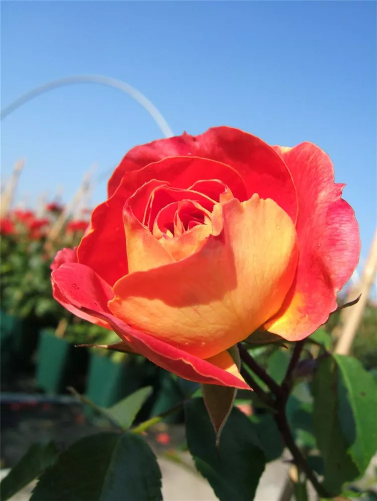 Die Beetrose 'Gebrüder Grimm'® weist eine gute Frosthärte auf.