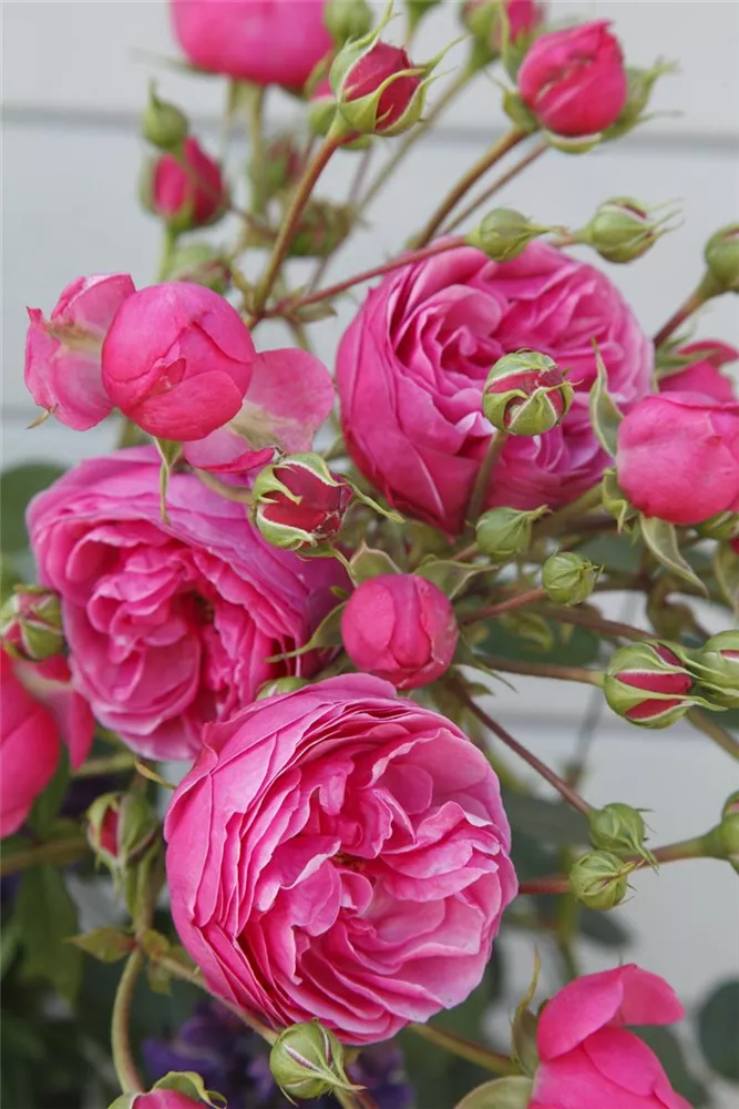Die Beetrose 'Pomponella'® (Rosa) ist eine reichblühende Rose, die im Garten eine besondere Rolle spielt. Die zahlreichen starkgefüllten Blüten sind dunkelrosa und erscheinen von Juni bis September. Ihr wunderbarer Duft entfaltet sich besonders an sonnigen, warmen Tagen. Mit den richtigen Begleitern an ihrer Seite, kommt die Königin der Blumen besonders gut zur Geltung. Niedrige Stauden, Lavendel und Salbei eignen sich ganz gut für diese Zwecke.