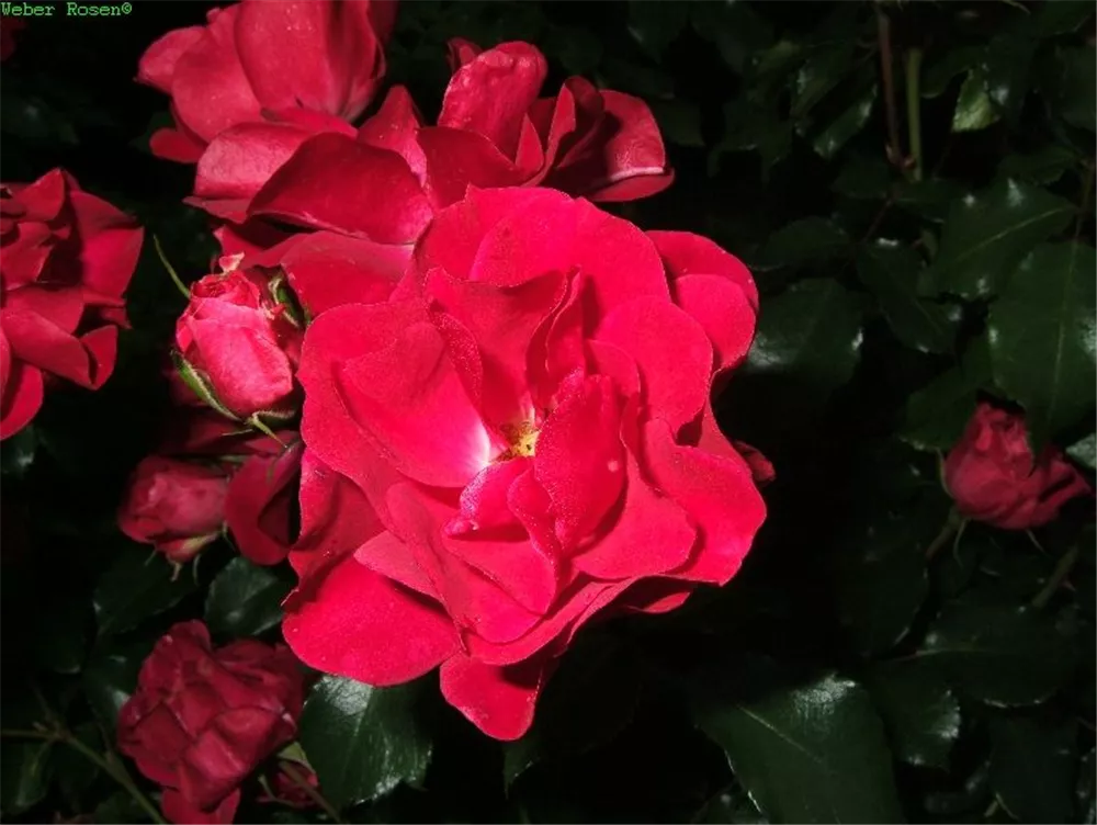 Die Beetrose 'Rotilia'® (Rosa) ist eine reichblühende Rose, die im Garten eine besondere Rolle spielt. Die zahlreichen halbgefüllten Blüten sind dunkelrot und erscheinen von Juni bis September. Ihr wunderbarer Duft entfaltet sich besonders an sonnigen, warmen Tagen. Mit den richtigen Begleitern an ihrer Seite, kommt die Königin der Blumen besonders gut zur Geltung. Niedrige Stauden, Lavendel und Salbei eignen sich ganz gut für diese Zwecke.