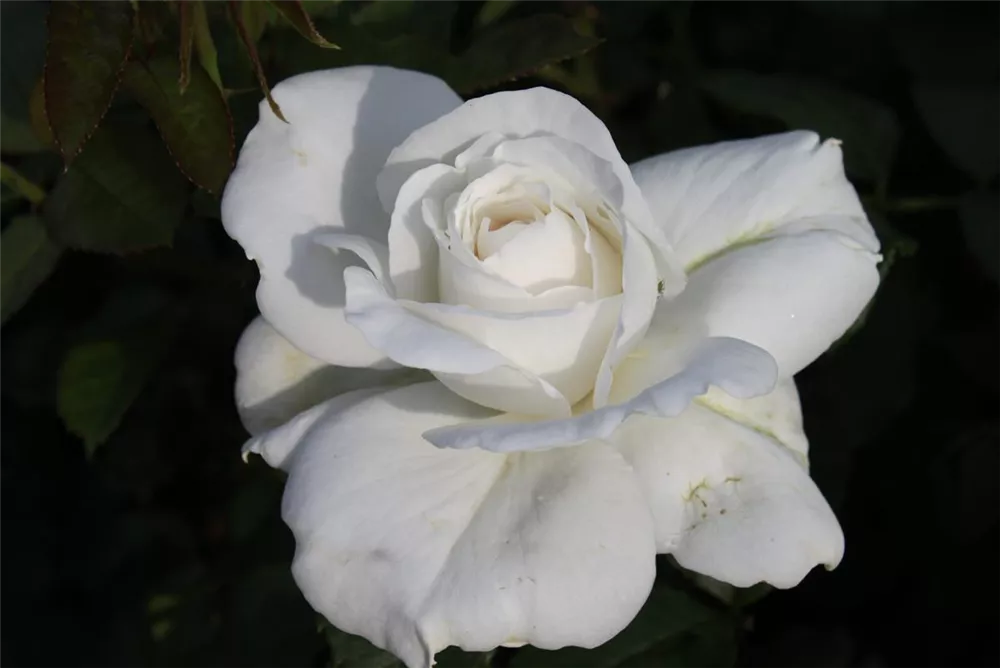 Die sommergrünen Blätter der Edelrose 'Annapurna'® sind dunkelgrün, gefiedert, wechselständig.