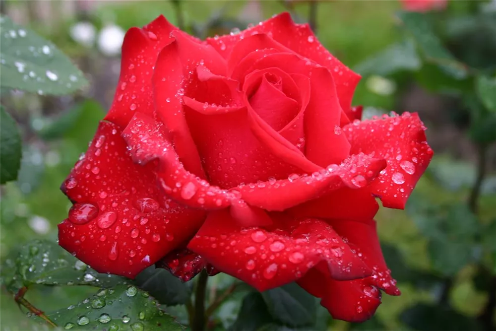 Die Edelrose 'Grande Amore'® (Rosa) ist eine reichblühende Rose, die im Garten eine besondere Rolle spielt. Die zahlreichen gefüllten Blüten sind leuchtend rot und erscheinen von Juni bis Oktober. Ihr wunderbarer Duft entfaltet sich besonders an sonnigen, warmen Tagen. Mit den richtigen Begleitern an ihrer Seite, kommt die Königin der Blumen besonders gut zur Geltung. Niedrige Stauden, Lavendel und Salbei eignen sich ganz gut für diese Zwecke.