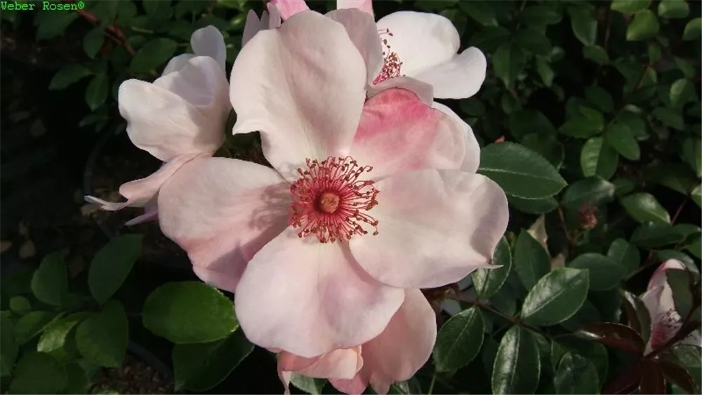 Die hellrosafarbenen, schalenförmigen Blüten der Beetrose 'Sweet Pretty'® erscheinen in Dolden von Juni bis September. Diese werden etwa 6 - 8 cm groß und sind leicht duftend.