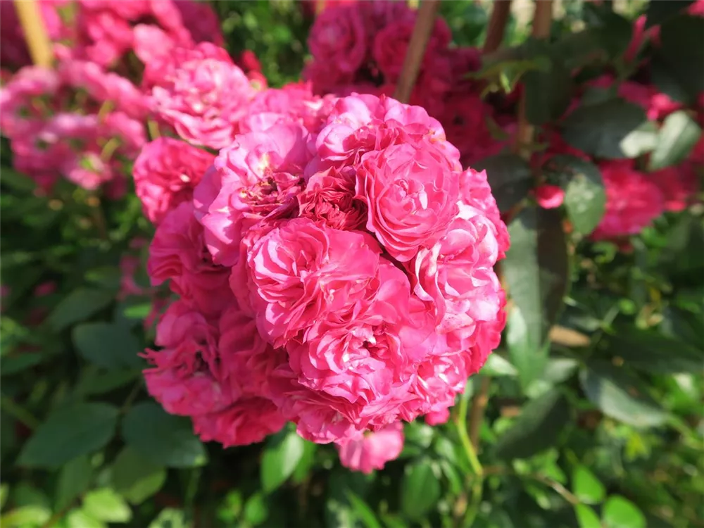 Die Strauchrose 'Dinky'® (Rosa) ist eine reichblühende Rose, die im Garten eine besondere Rolle spielt. Die zahlreichen gefüllten Blüten sind pink und erscheinen von Juni bis Oktober. Ihr wunderbarer Duft entfaltet sich besonders an sonnigen, warmen Tagen. Mit den richtigen Begleitern an ihrer Seite, kommt die Königin der Blumen besonders gut zur Geltung. Niedrige Stauden, Lavendel und Salbei eignen sich ganz gut für diese Zwecke.