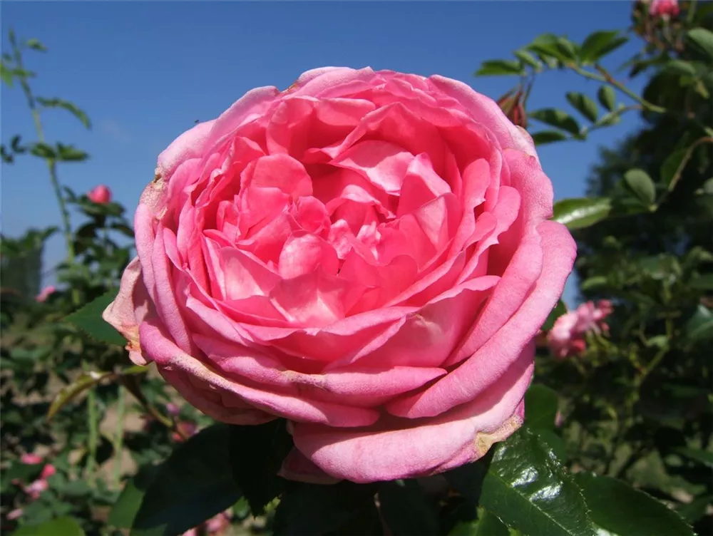 Die Strauchrose 'La Rose de Molinard' (Rosa) ist eine reichblühende Rose, die im Garten eine besondere Rolle spielt. Die zahlreichen starkgefüllten Blüten sind pink und erscheinen von Juni bis Oktober. Ihr wunderbarer Duft entfaltet sich besonders an sonnigen, warmen Tagen. Mit den richtigen Begleitern an ihrer Seite, kommt die Königin der Blumen besonders gut zur Geltung. Niedrige Stauden, Lavendel und Salbei eignen sich ganz gut für diese Zwecke.