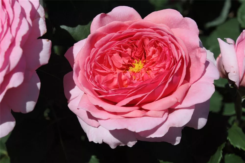 Die Strauchrose 'Princess Alexandra of Kent' (Rosa) ist eine reichblühende Rose, die im Garten eine besondere Rolle spielt. Die zahlreichen starkgefüllten Blüten sind pink und erscheinen von Juni bis Oktober. Ihr wunderbarer Duft entfaltet sich besonders an sonnigen, warmen Tagen. Mit den richtigen Begleitern an ihrer Seite, kommt die Königin der Blumen besonders gut zur Geltung. Niedrige Stauden, Lavendel und Salbei eignen sich ganz gut für diese Zwecke.