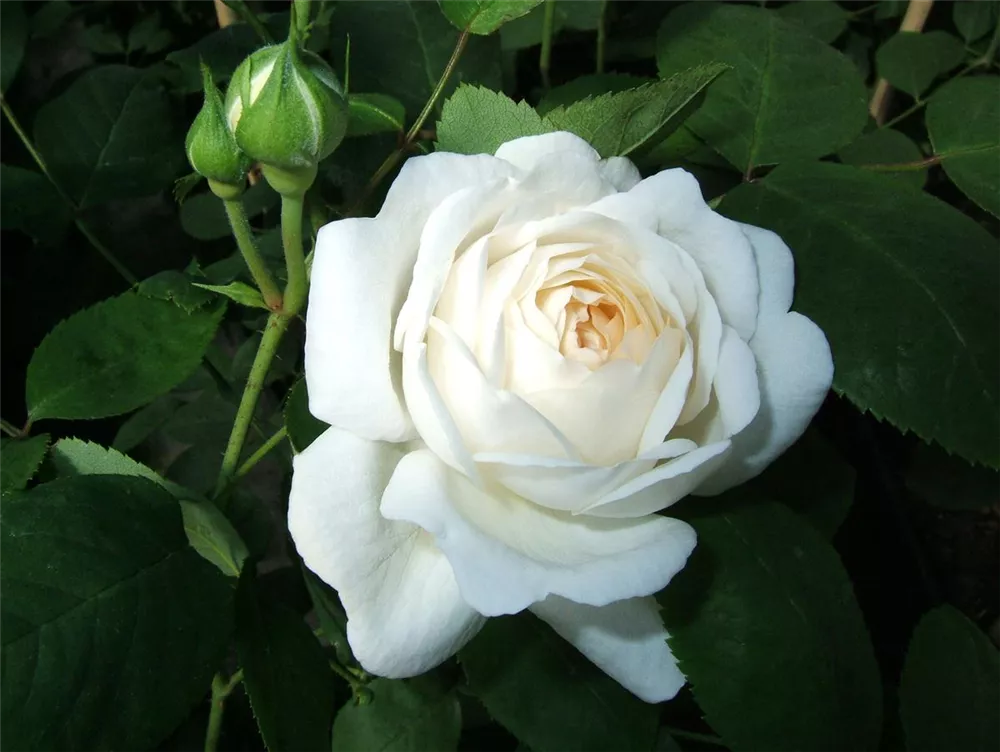 Die Triebe von Rosa 'Winchester Cathedral'® sind bestachelt.