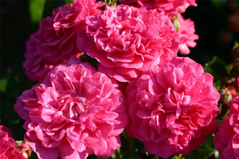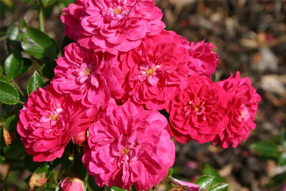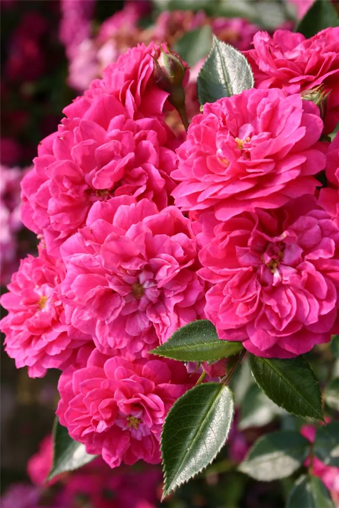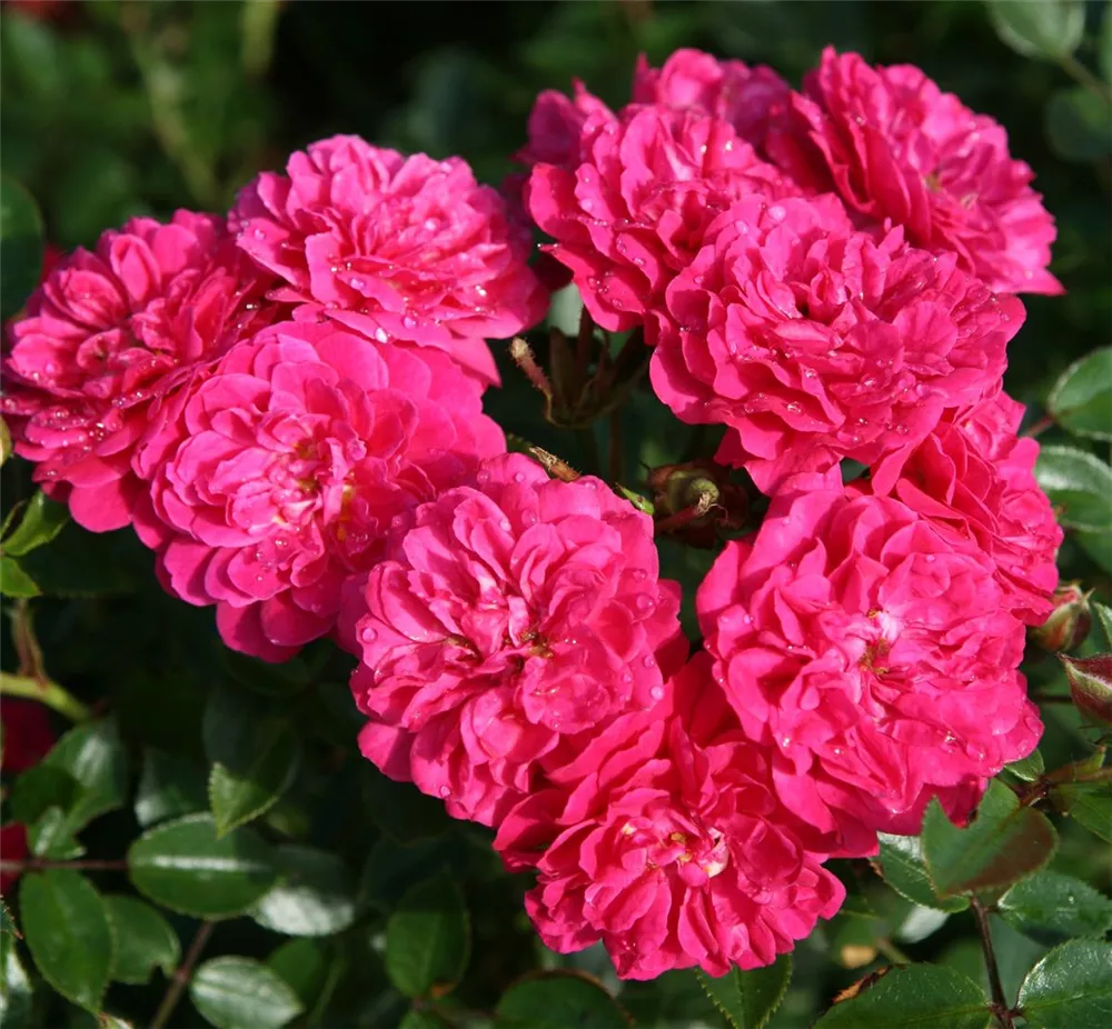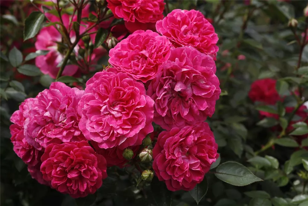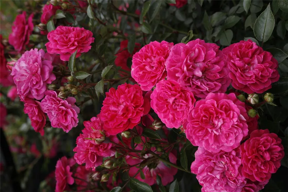 Die Zwergrose 'Roxy'® (Rosa) ist eine reichblühende Rose, die im Garten eine besondere Rolle spielt. Die gefüllten Blüten sind magenta und erscheinen zahlreich von Juni bis Oktober. Mit den richtigen Begleitern an ihrer Seite, kommt die Königin der Blumen besonders gut zur Geltung. Niedrige Stauden, Lavendel und Salbei eignen sich ganz gut für diese Zwecke.