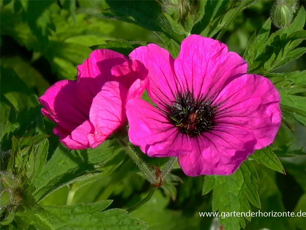 Geranium psilostemon bildet schalenförmige, magentafarbene Blüten ab Juni.