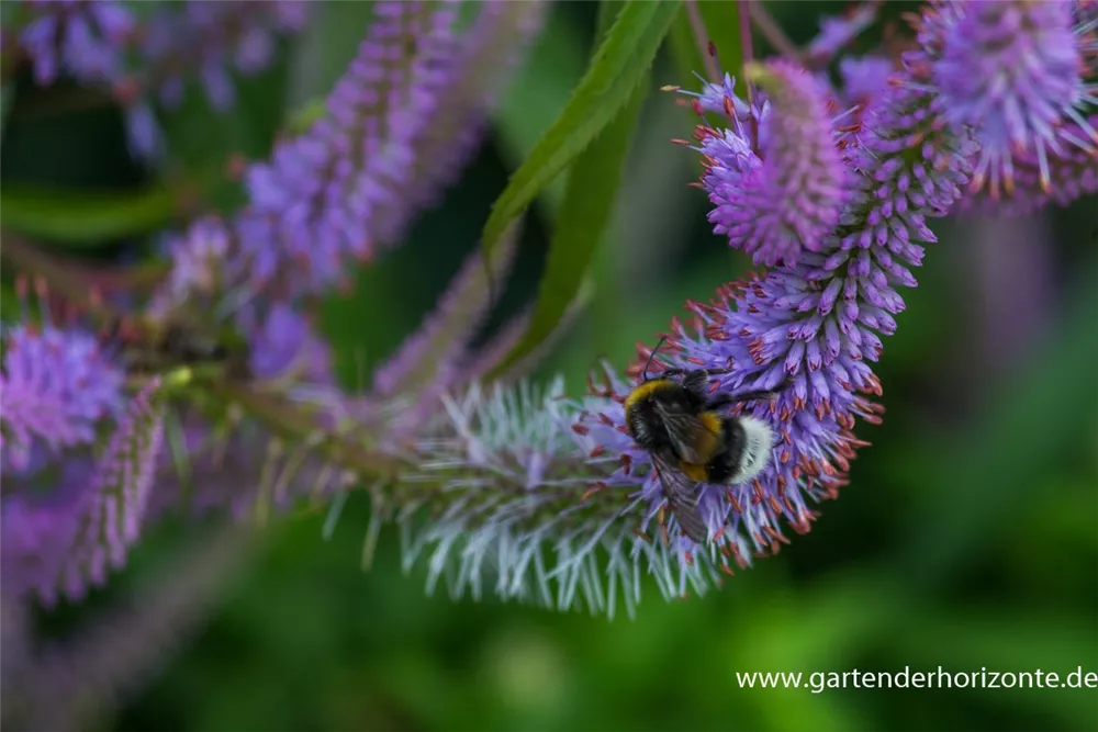 Veronicastrum sibiricum 'Apollo' bildet in Ähren angeordnete, lilafarbene Blüten ab Juni.