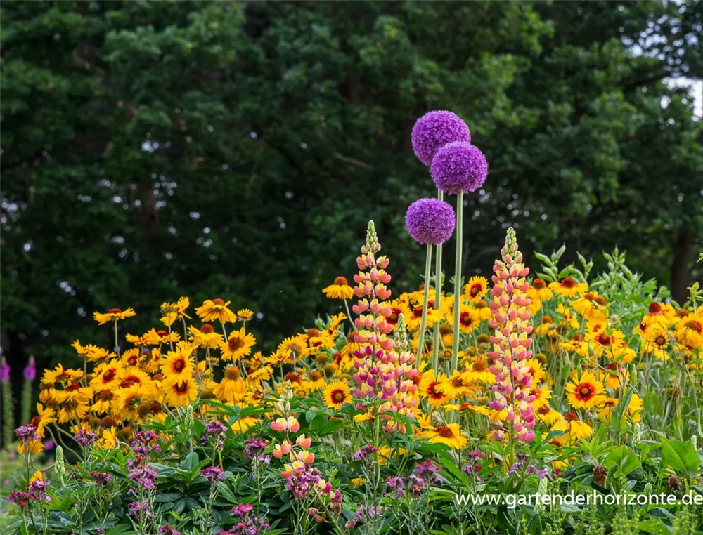 Chinesische Prachtspiere, Funkie, Herzblättrige Schaumblüte.