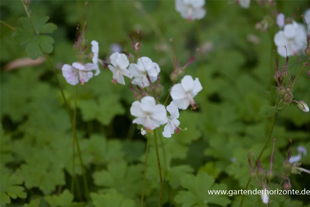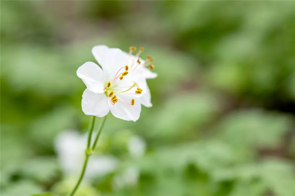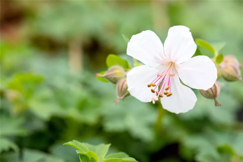 Geranium x cantabrigiense 'Biokovo' bildet hellrosafarbene Blüten ab Mai.