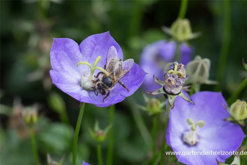 Campanula carpatica 'Samantha'® bildet glockenförmige, blau-weiße Blüten ab Mai.